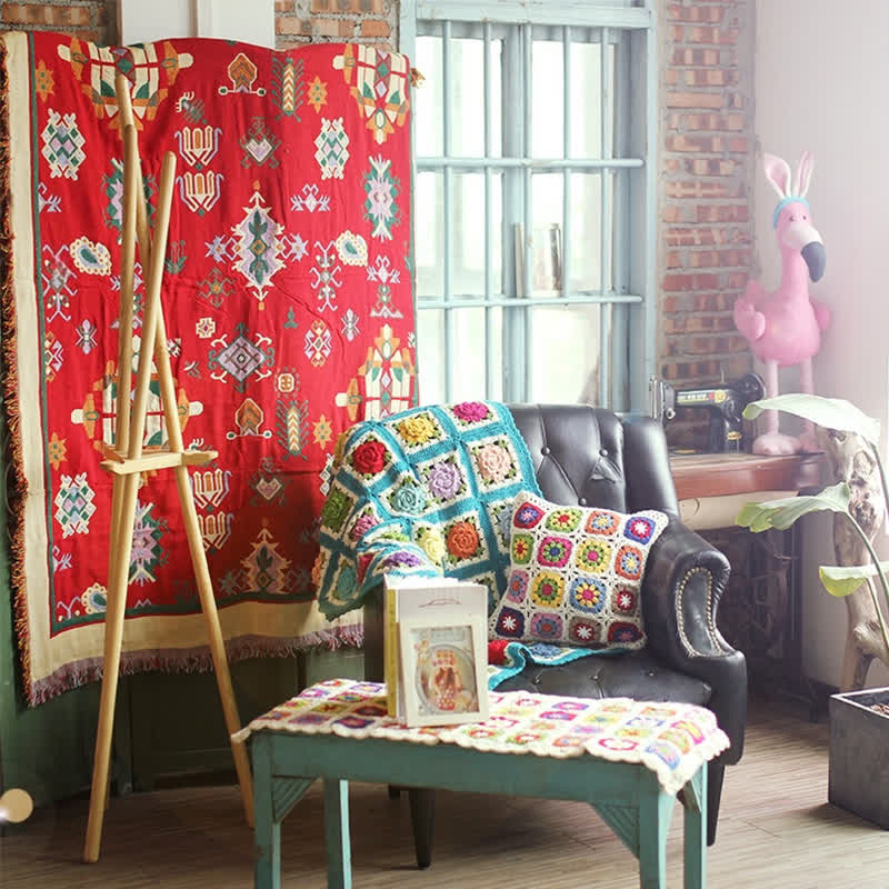 Ryxilo Rural Rose Hand-woven Crochet Sofa Blanket